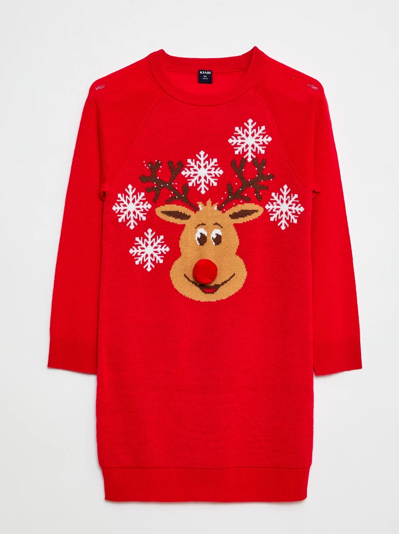 Côté matière, Kiabi a tout compris. La robe est confectionnée dans une maille tricot douce, ultra agréable à porter. Les manches longues apportent la chaleur nécessaire pour affronter les températures de début d'hiver tout en restant stylée. Avec son col rond classique et son imprimé "Noël" sur le devant, elle coche toutes les cases pour accompagner aussi bien un après-midi cocooning qu'un repas festif en famille.