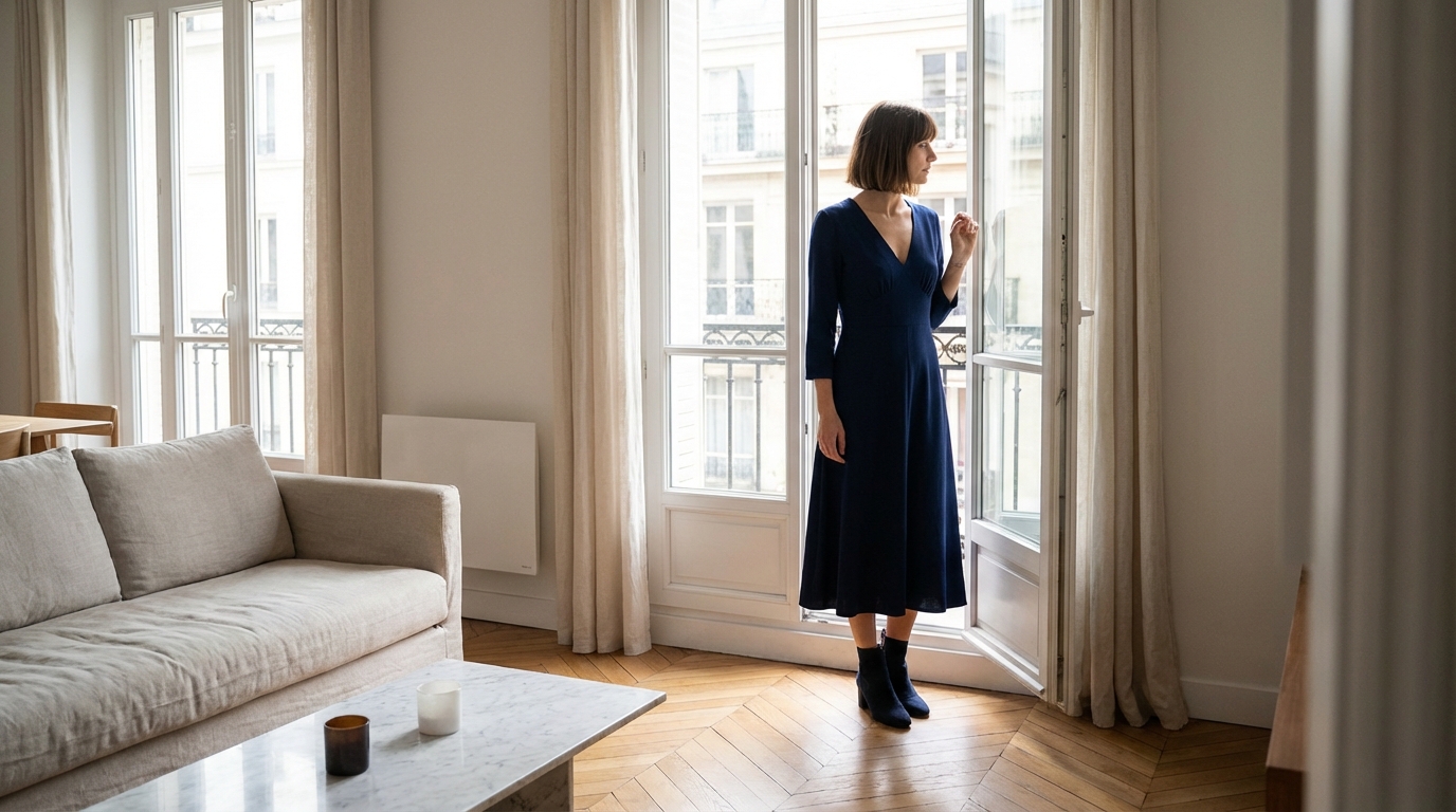 L'erreur que je répétais inlassablement portait un nom bien précis : la longueur midi. Cette coupe, qui s'arrête pile au niveau du mollet, est un véritable piège géométrique pour celles qui culminent à moins d'un mètre soixante. Visuellement, l'ourlet crée une ligne horizontale forte et nette. Or, en plaçant cette ligne en plein milieu de la jambe, on casse la dynamique verticale de la silhouette. L'œil, au lieu de parcourir le corps de haut en bas d'un seul trait, est brutalement stoppé. C'est une barrière visuelle qui raccourcit instantanément la jambe perçue, donnant l'impression que l'on est bien plus petite qu'en réalité.